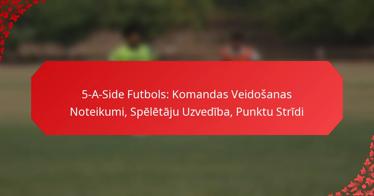 5-a-side futbols ietver piecu spēlētāju komandas, tostarp vārtsargu, ar elastīgām formācijas noteikumiem, kas ļauj stratēģiskām pielāgošanām, pamatojoties uz komandas stiprajām pusēm un pretinieku vājībām. Uzsverot sportiskumu un cieņu, spēlētājiem tiek ieteikts saglabāt labu uzvedību, lai veicinātu godīgu spēli un uzlabotu spēles pieredzi. Tomēr var rasties strīdi par vārtiem, bieži vien saistīti ar vārtu derīgumu un potenciālām pārkāpumiem spēles laikā.